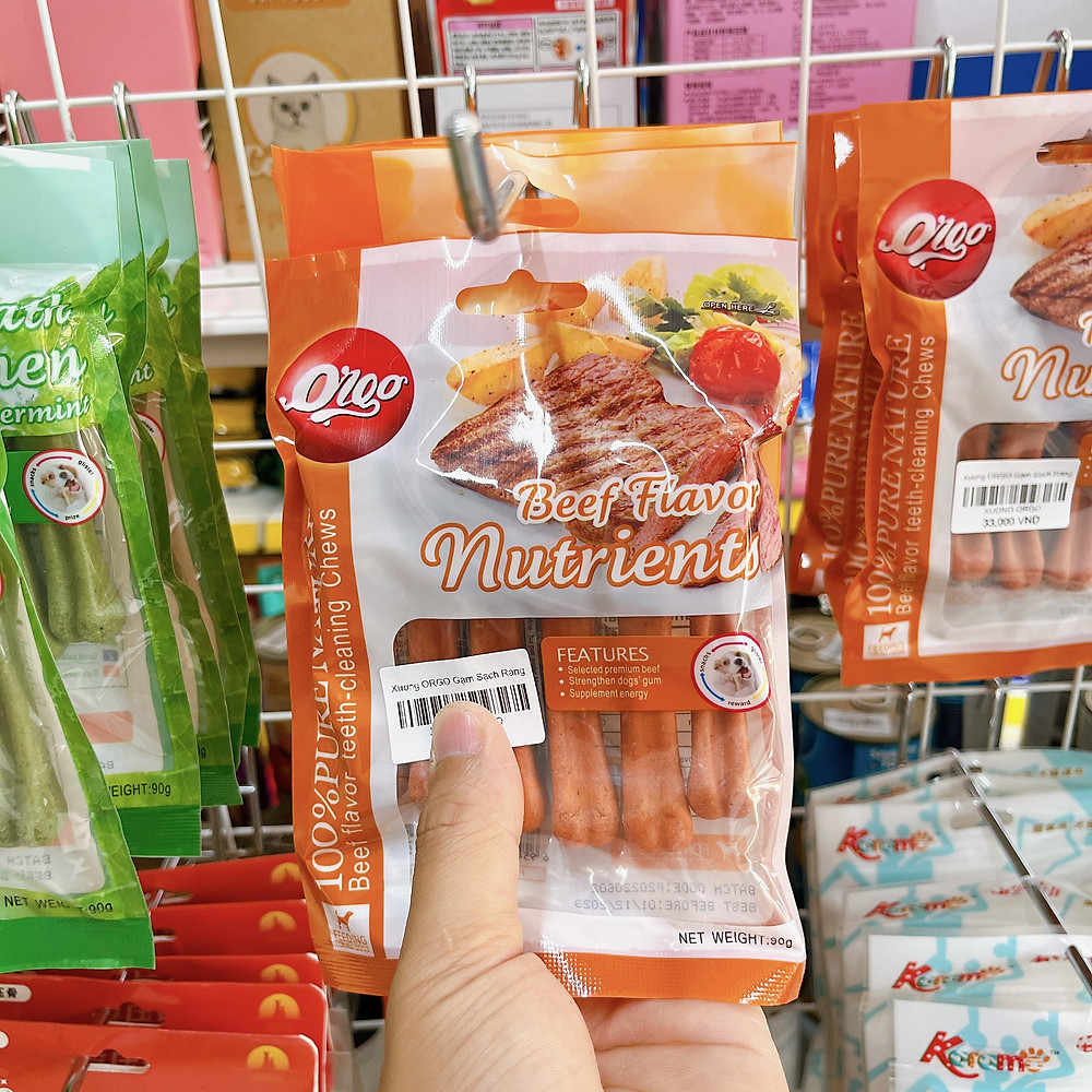 - Orgo vị thịt bò: Chứa các thành phần thịt bò tự nhiên bổ sung dinh dưỡng và năng lượng, cấu trúc xương giúp loại bỏ mảng bám.