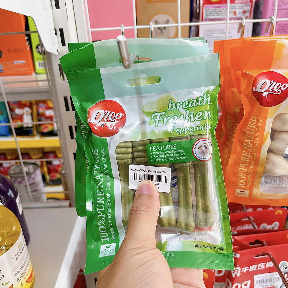 - Orgo vị bạc hà: Chứa các thành phần bạc hà tự nhiên có khả năng loại bỏ các vi khuẩn gây hôi miệng, làm sạch răng và giảm cao răng cho thú cưng.