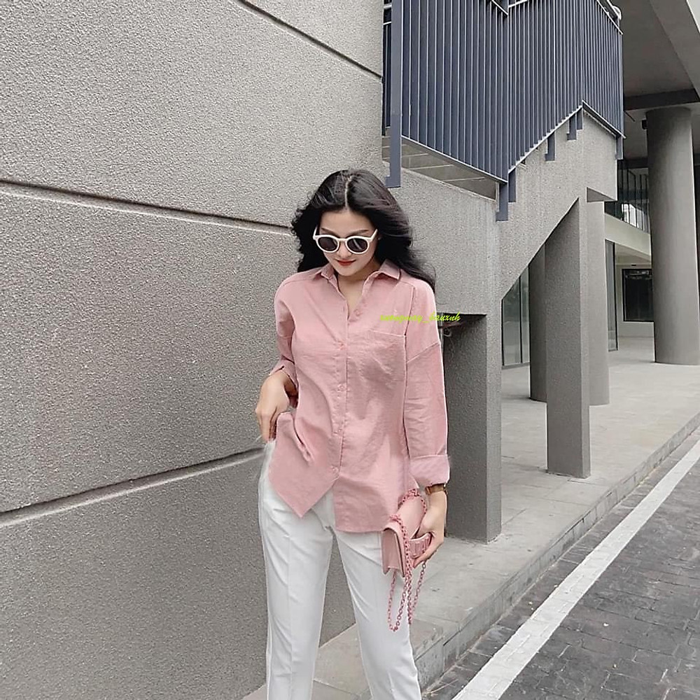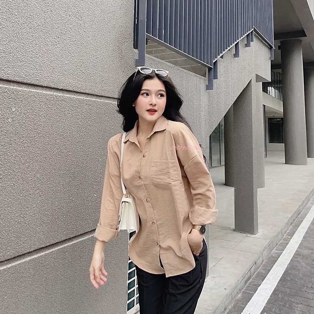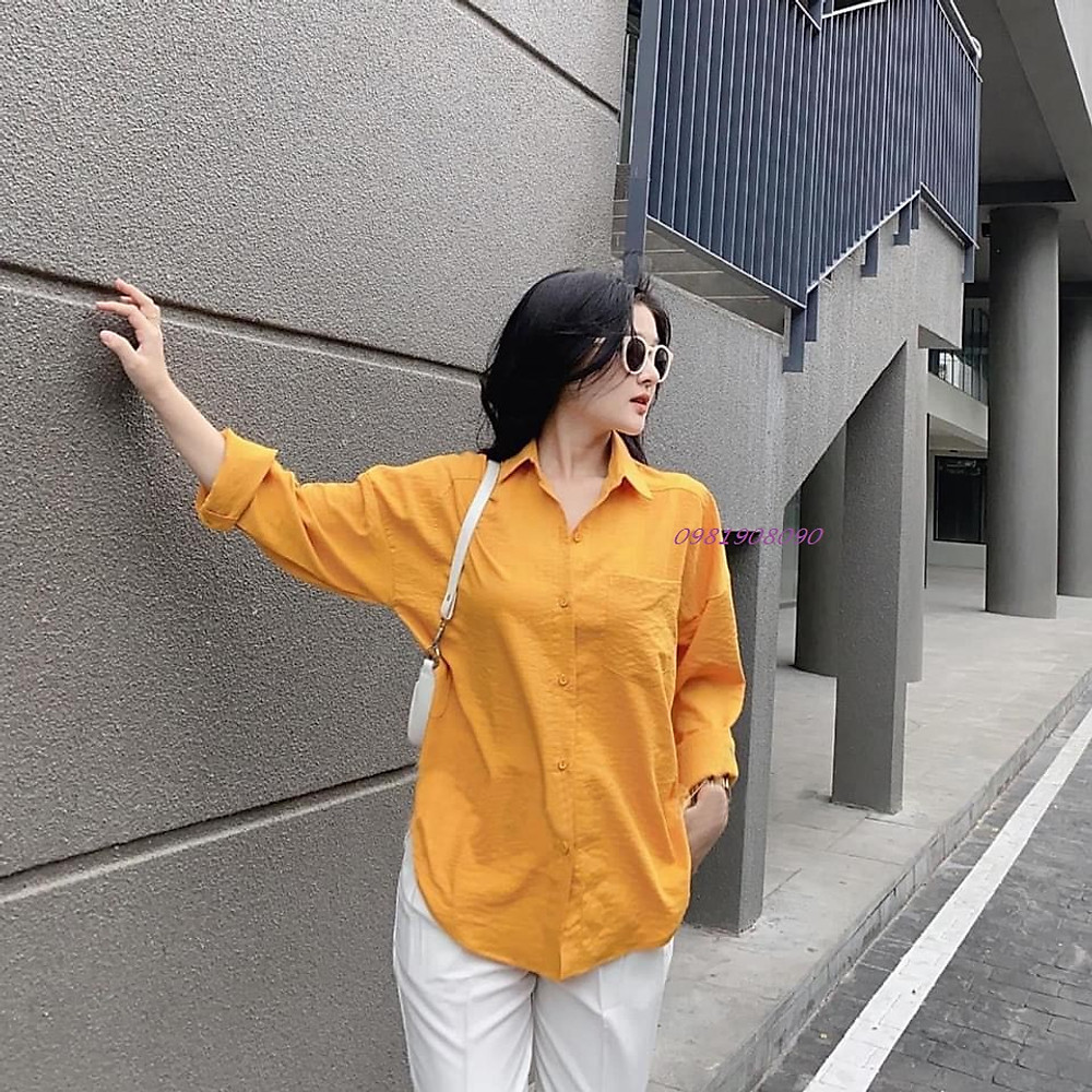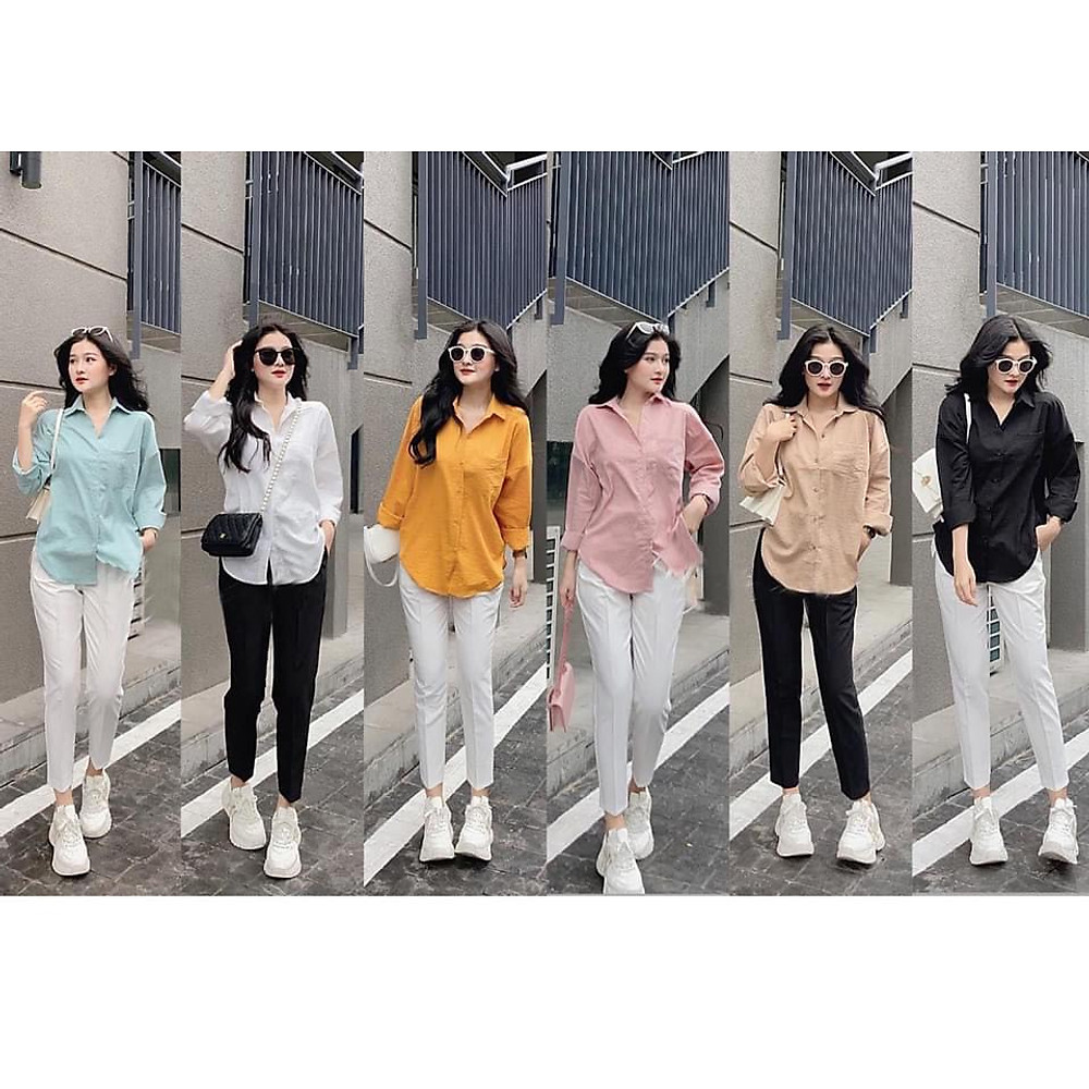 áo sơ mi nữ dài tay vạt tôm chất đũi nhiều màu