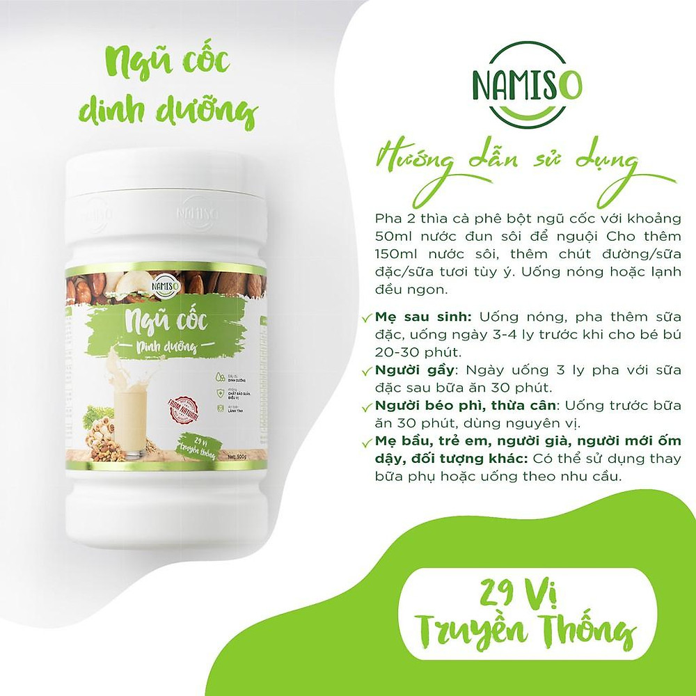 Hướng dẫn sử dụng cho sản phẩm bột ngũ cốc dinh dưỡng Namiso