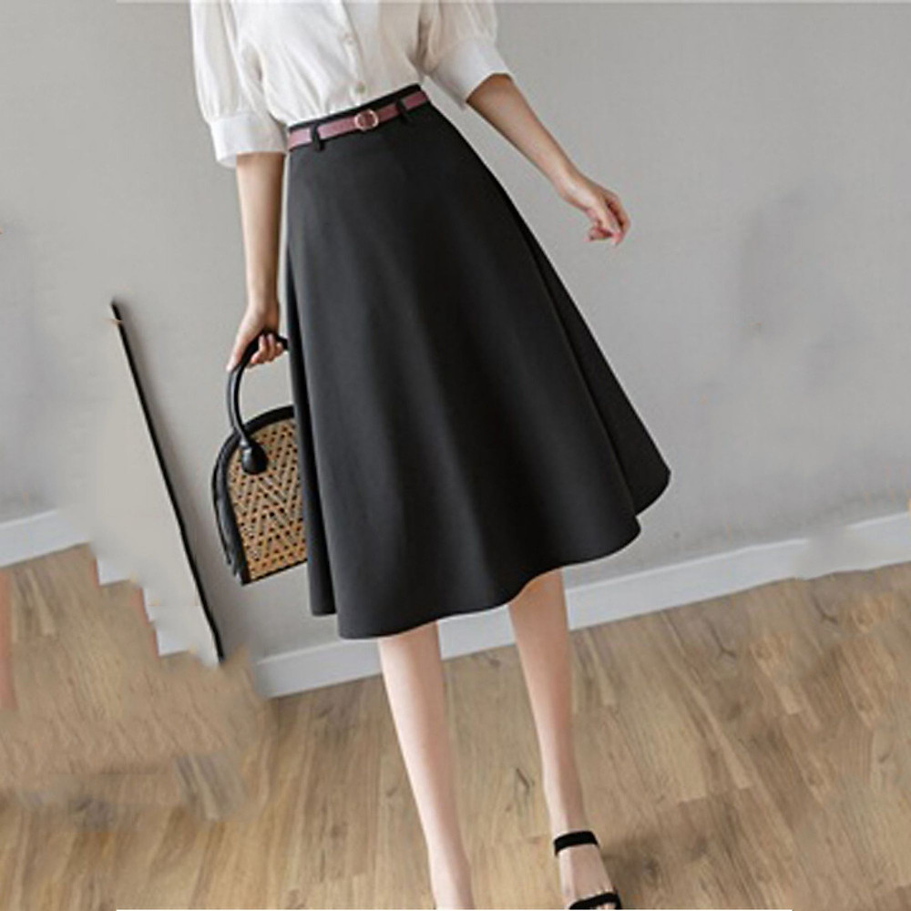 -Chân váy lưng cao, dáng xòe che khuyết điểm, tôn dáng