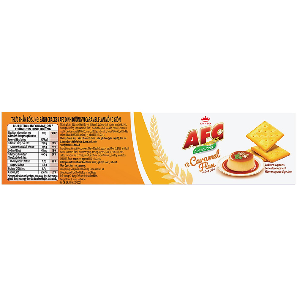 Bánh AFC Caramel Flan chứa hàm lượng canxi cao giúp xương chắc khỏe và chứa chất xơ giúp hỗ trợ tiêu hóa.