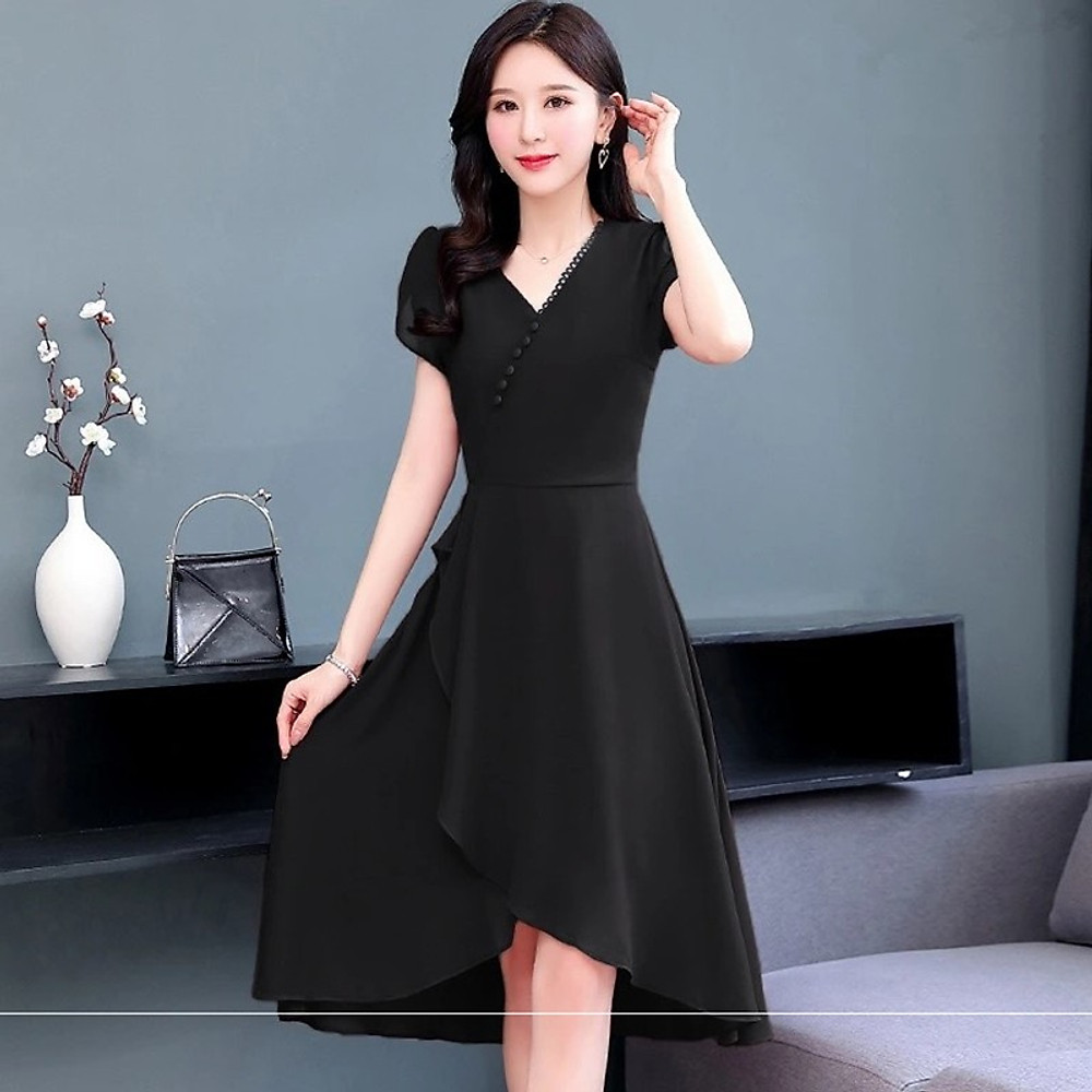 Đầm xòe cổ tim phối nút sang trọng size từ 38 đến  71kg