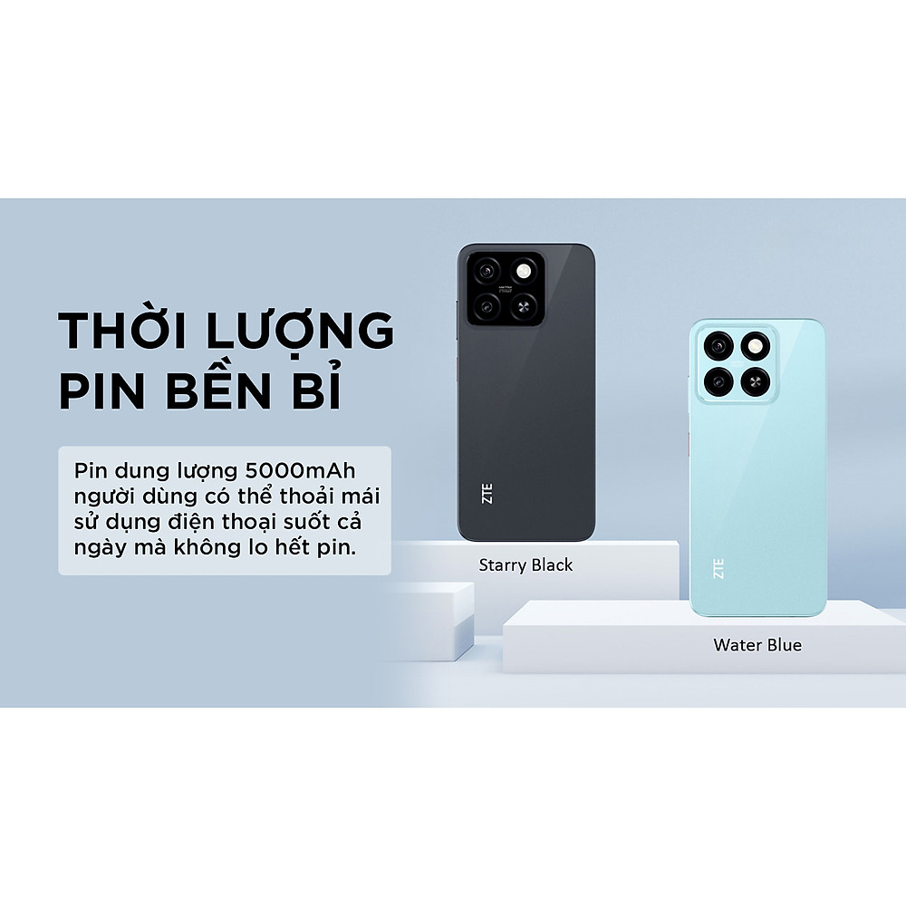 Một trong những điểm mạnh khác của ZTE Blade A55 là viên pin dung lượng 5000mAh. Đây là dung lượng pin thường thấy ở các dòng smartphone tầm trung, nhưng lại rất hiếm gặp ở các thiết bị giá rẻ. Với viên pin lớn này, người dùng có thể thoải mái sử dụng điện thoại suốt cả ngày mà không lo hết pin.