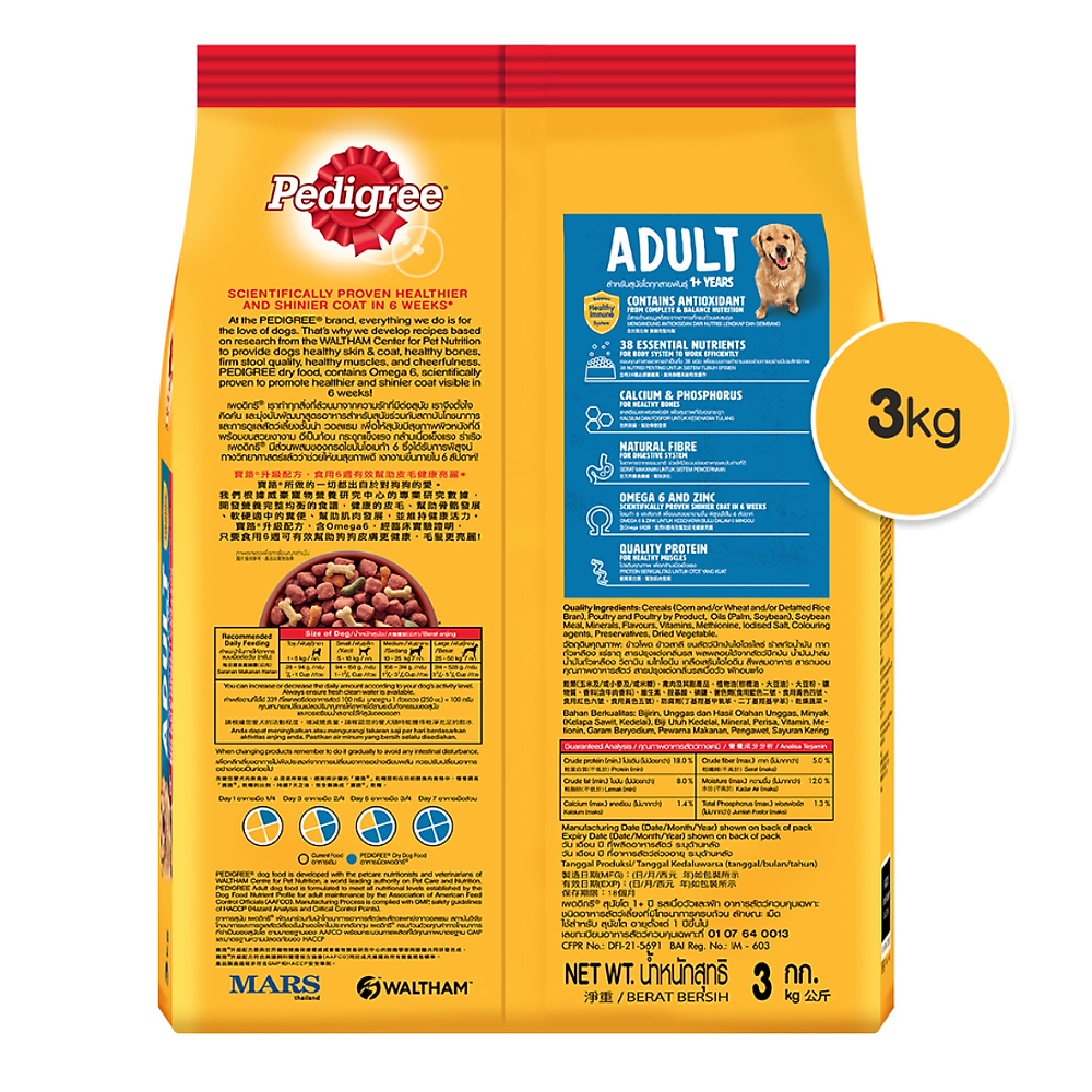 - Đồ Ăn Cho Chó Vị Thịt Bò Và Rau Củ Pedigree (3Kg) được chế biến từ các loại rau củ quả nhiều chất dinh dưỡng cùng với vị thịt bò thơm ngon sẽ đem lại sự thích thú cho chó cưng nhà bạn. Sản phẩm giúp bổ sung nhiều chất cần thiết, bảo đảm sự tăng trưởng và phát triển đồng đều cho cún cưng.