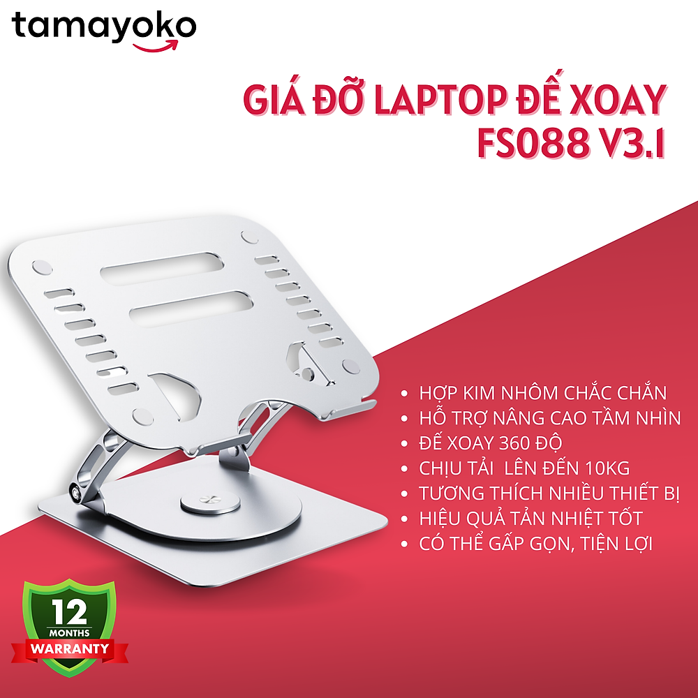Giá đỡ máy tính xách tay, laptop Tamayoko được chế tạo từ hợp kim nhôm nguyên khối chắc chắn, cứng cáp, bền bỉ và sang trọng
