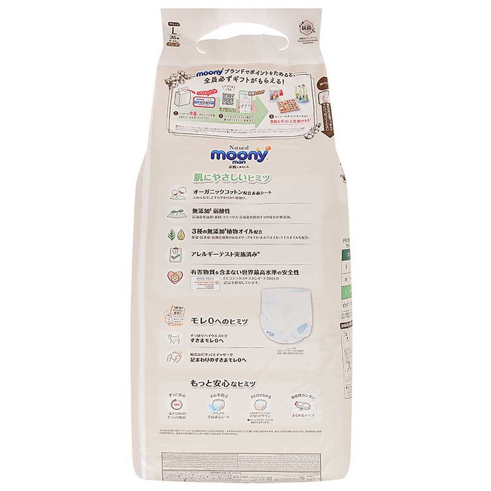 Bỉm – Tã quần Moony Natural Bông Organic size L 36 miếng (9 – 14kg)