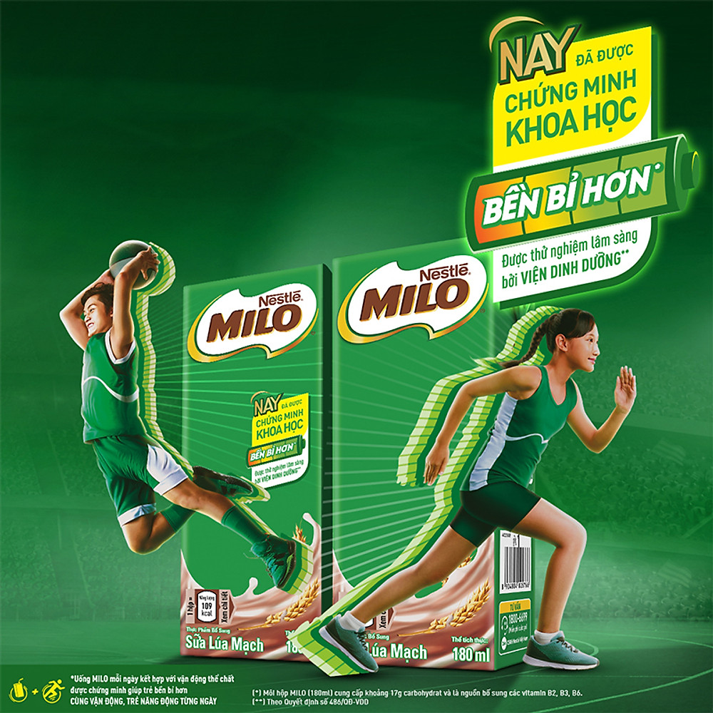 – Uống sữa lúa mạch Nestlé MILO mỗi ngày giúp bổ sung năng lượng và dưỡng chất thiết yếu, cho trẻ năng động mỗi ngày!