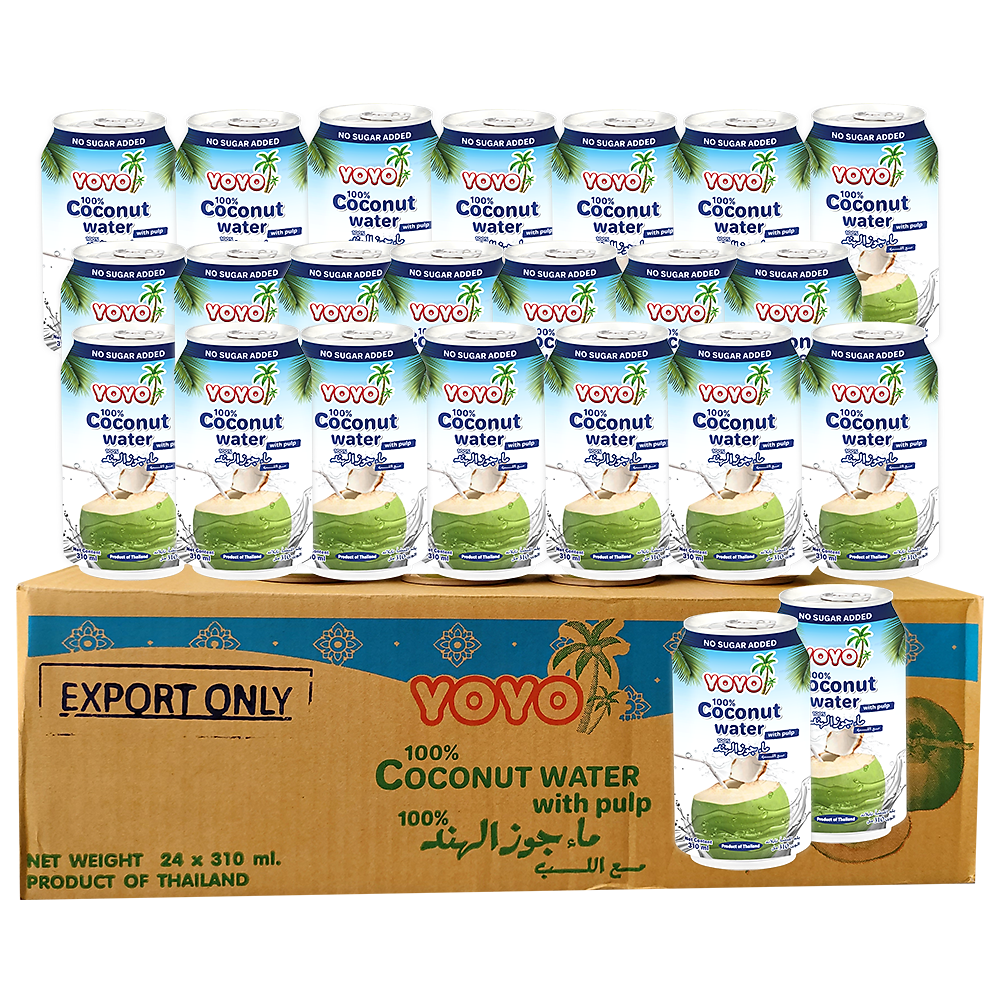 Thùng nước dừa xiêm có cơm dừa 24 lon 310ml YOYO 100% COCONUT WATER WITH PULP – NO SUGAR ADDED