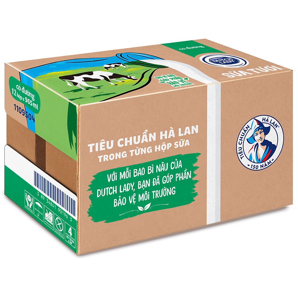Thùng 12 Hộp Sữa Tươi Tiệt Trùng Dutch Lady Cô Gái Hà Lan Có Đường (12 X 965ML)