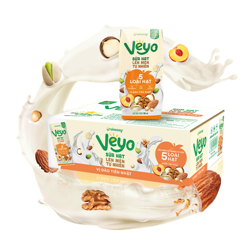Thùng Veyo Sữa hạt lên men tự nhiên Vị Đào Tiên Nhật (30hộp x 180ml)