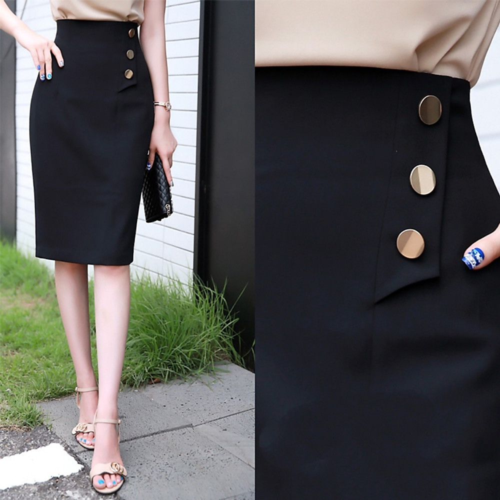 Chân Váy Dài Lưng Cao New Design ,Thiết Kế Dài 62cm, Phối Nút Phong Cách Váy Công Sở, Chất Vải Tốt Co Giãn Nhẹ CV19